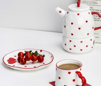 Little Red Heart Coffee Cup Set Porcelain Gift